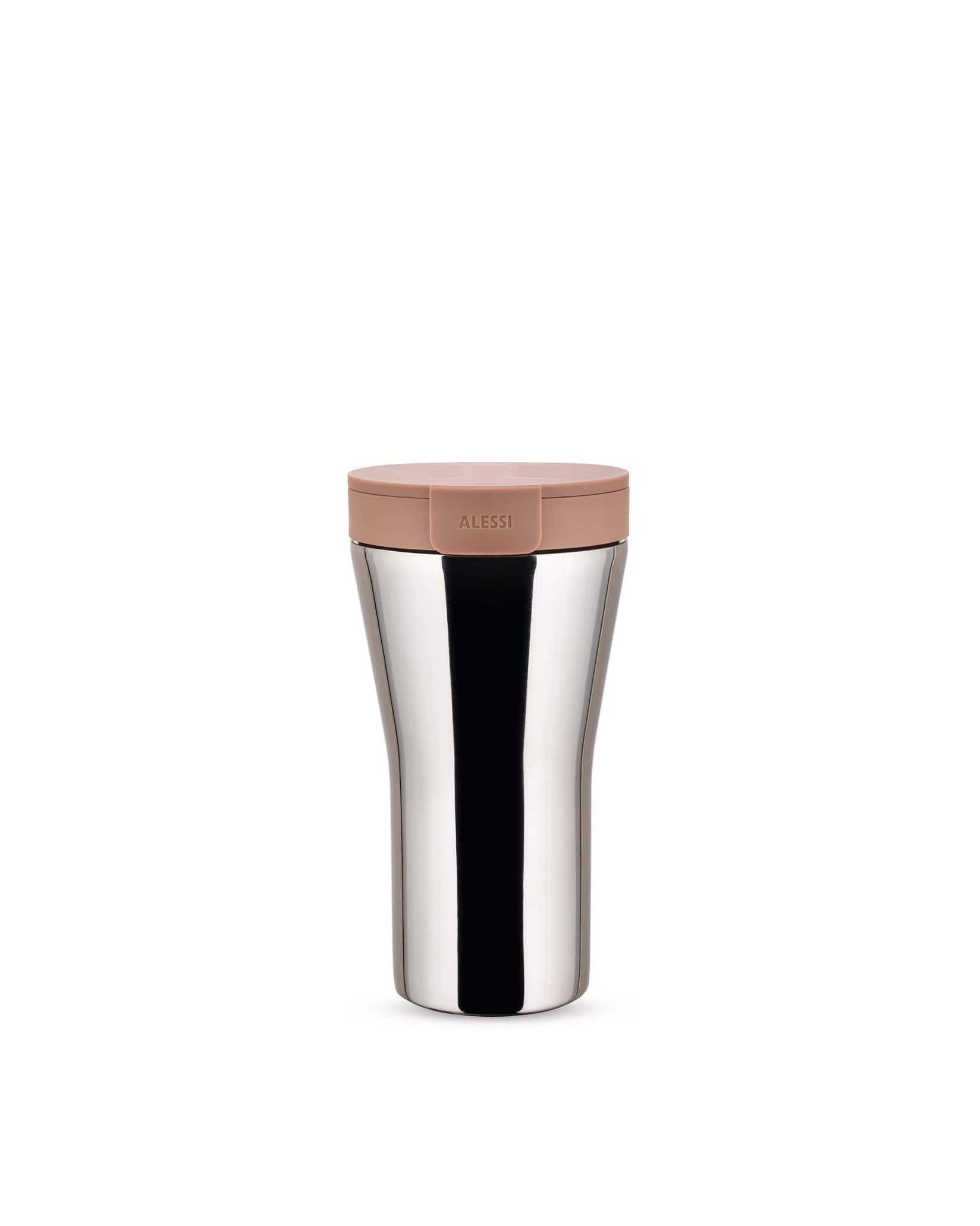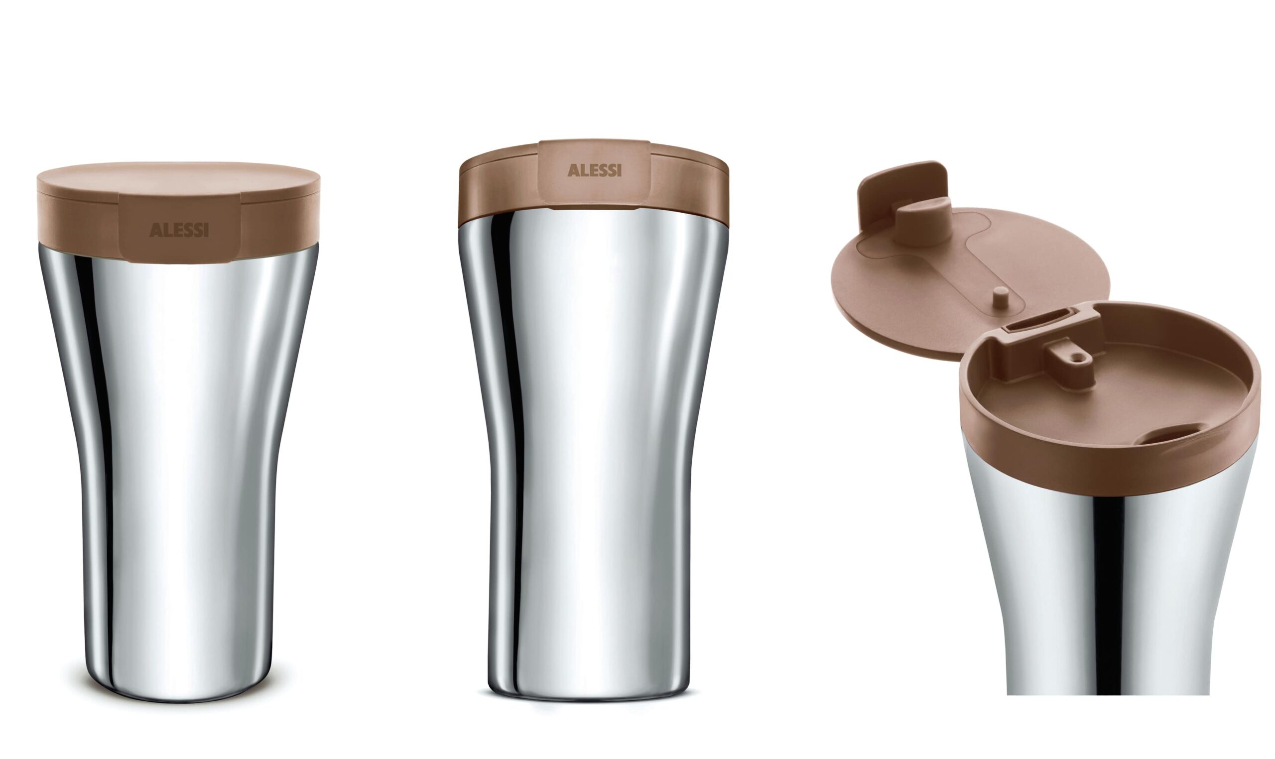 In a world where growing dynamism leads to new habits of life, we feel a progressive need for objects and instruments that allow us to celebrate new daily rituals that mark the times and moments of our day. The Alessi travel mug, designed by Giulio Iacchetti, represents the pleasure of sipping a hot or cold drink while strolling through the city: it is a thermal jug in steel with a vacuum cavity that maintains the beverage‘s temperature. Its design consists of a cylindrical base that widens into a conical shape that is easy to hold and fits in standard bottle holders for cars, strollers, etc.