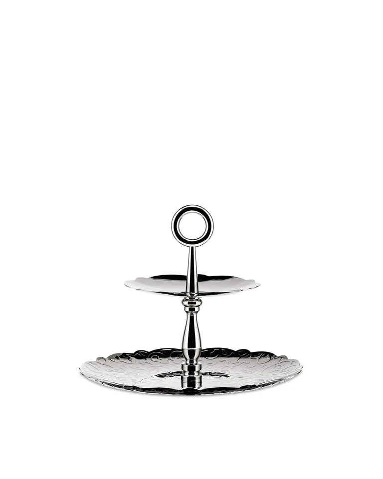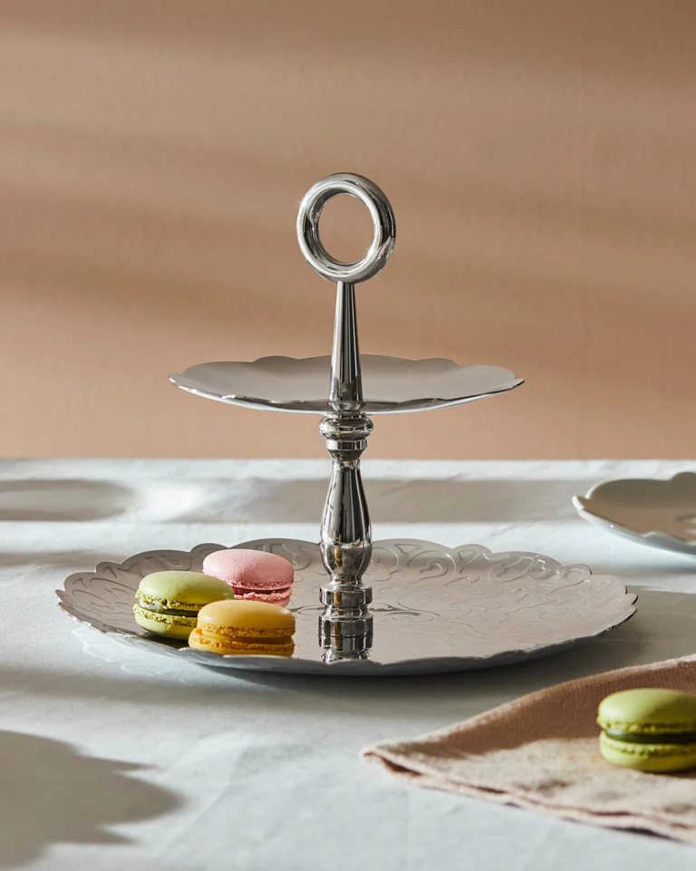 The two-dish Dressed cake stand, designed by Marcel Wanders, is the ideal accessory for serving sweets or savoury hors d’oeuvres with a stylish, sophisticated table setting.
