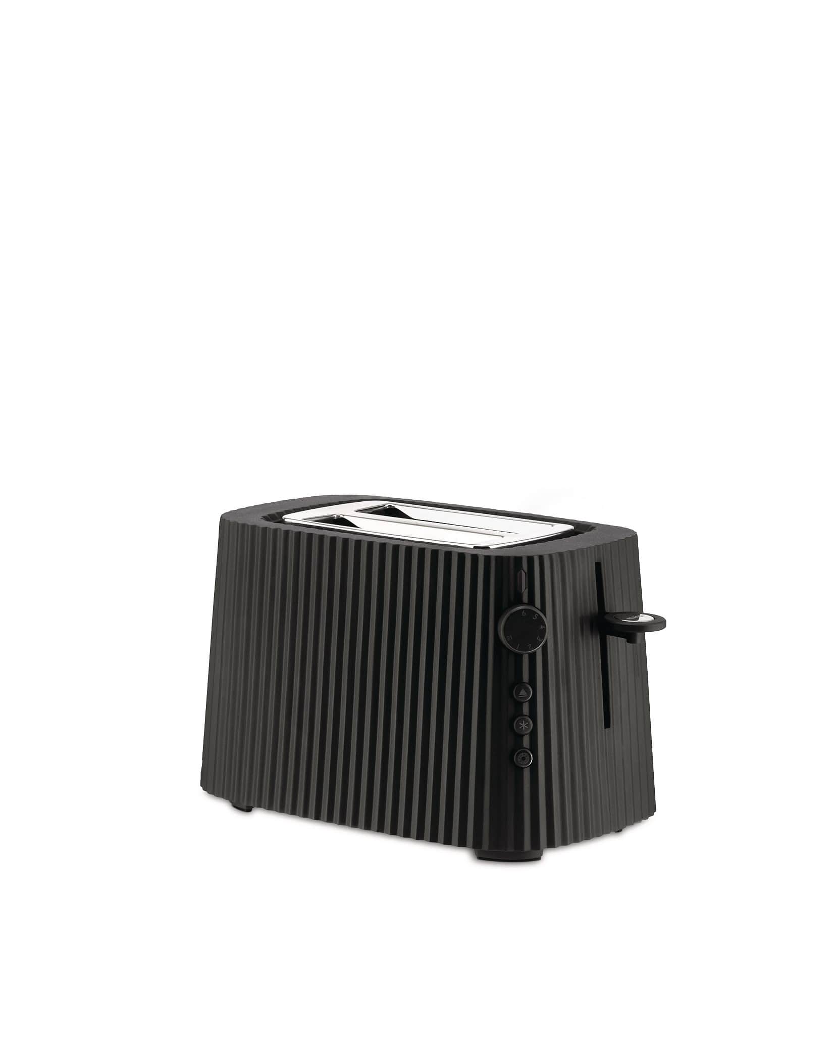 The elegant pleated surface exhorts you to display it on the kitchen counter designed by Michele De Lucchi. The Alessi Plissé is the perfect two-slice toaster! The numerous functions it is equipped with make it versatile, easy and safe to use featuring six browning settings, bagel, defrost and quick reheat functions.